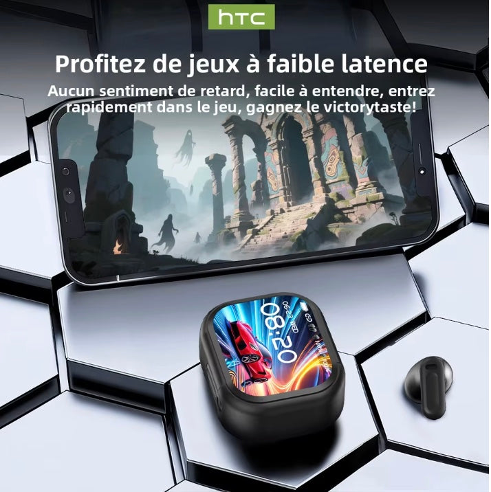 • Connexion stable et faible latence — Équipés du Bluetooth 5.3, les HTC IA Earbuds garantissent une synchronisation fluide entre audio et vidéo, parfaite pour les appels, les vidéos ou la traduction en direct.