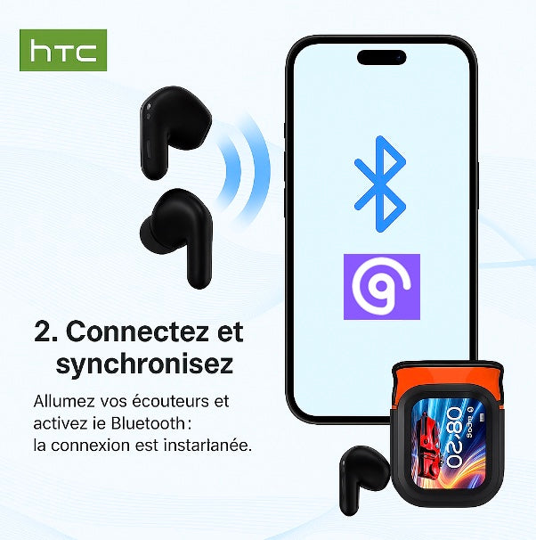 Allumez vos écouteurs, activez le Bluetooth, puis ouvrez l’application. En quelques secondes, votre appareil se synchronise automatiquement — vous êtes prêt à profiter d’une expérience fluide et intuitive.